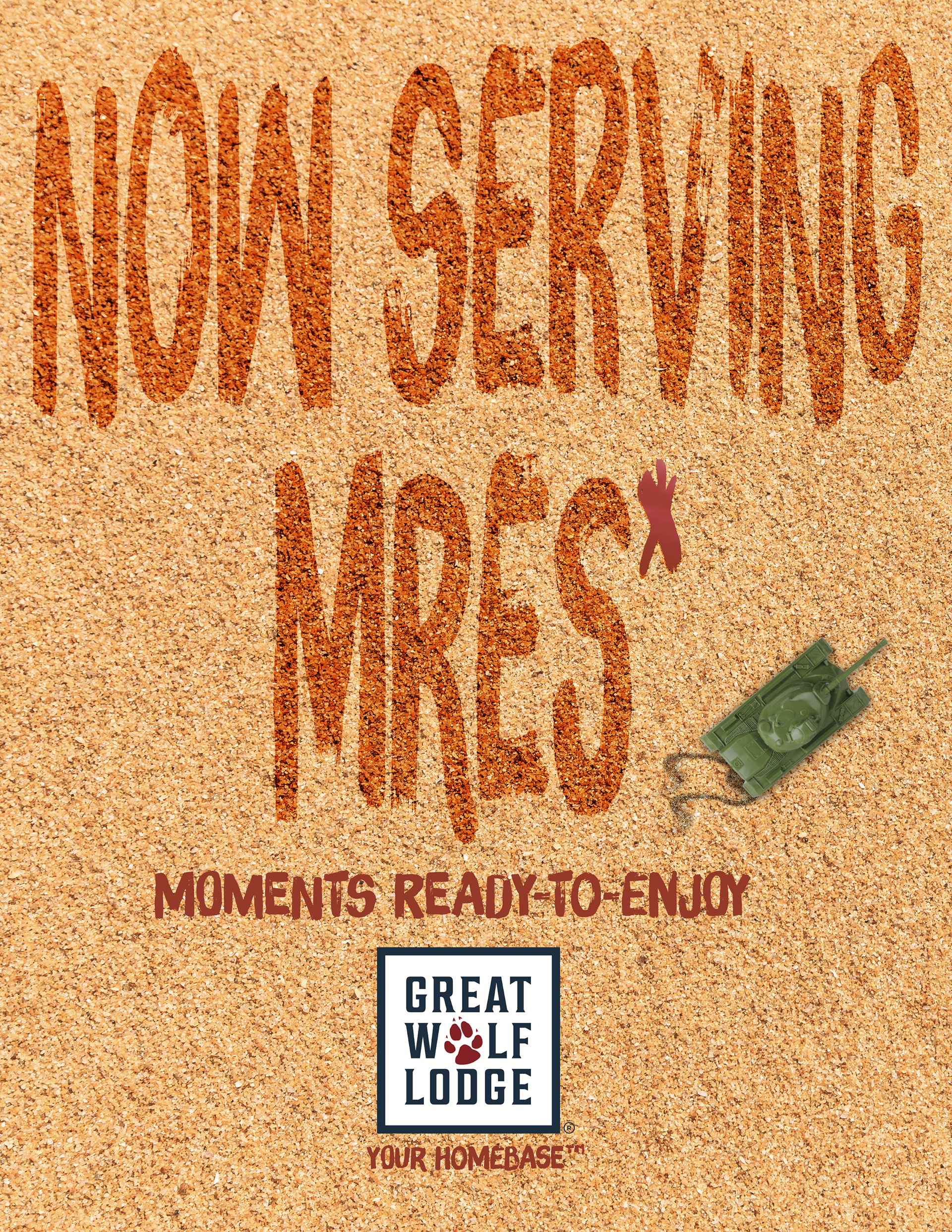 Military families know a level of change most of us never experience: new towns, new schools, new homes, and the constant pressure to create stability for their children. Our campaign positions Great Wolf Lodge as the one place that stays familiar, no matter where military life takes them. Inspired by the emotional truth that military kids collect “home” in moments rather than places, we built a fully integrated concept that honors their resilience while offering comfort, continuity, and fun. Through a print campaign that rewrites classic military abbreviations with GWL’s playful spirit, an interactive “We’ve Got Your Back-pack” care package system that keeps families connected across distance, and a radio spot that captures the energy of kids taking command of their weekend, Great Wolf Lodge becomes more than a getaway; it becomes their homebase.